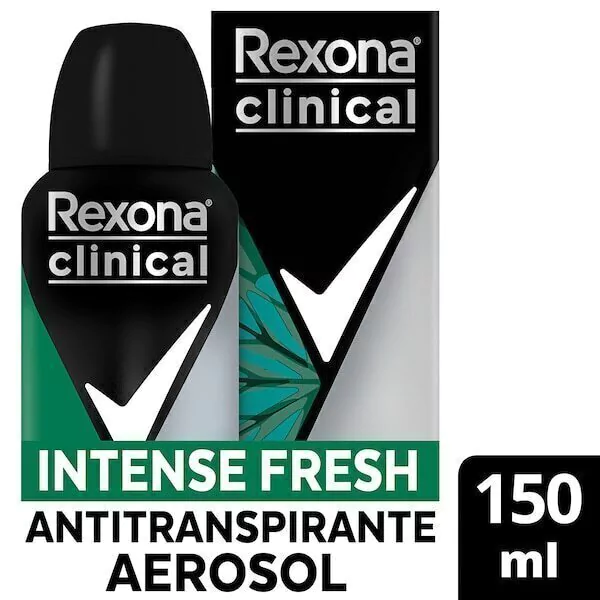 | Nuevo Antitranspirante en aerosol Rexona Clinical Intense Fresh (150 ml) te ofrece 3X PROTECCIÓN + CONTROL DEL OLOR. Rexona Clinical MEN en aerosol brinda tres veces mayor protección contra el sudor *vs. un antitranspirante común y **vs. versión anterior. Gracias a su avanzada tecnología, Rexona genera máxima protección, conformando una capa protectora profunda sobre las glándulas sudoríparas, ayudando a sudar menos. La fuerza Clinical crea una barrera impenetrable contra la transpiración que te protege hasta por 96 horas. Está especialmente diseñado para aquellas personas que necesitan máxima protección contra la transpiración y el mal olor. En condiciones extremas necesitas protección extrema. Su tecnología responde a la química de tu cuerpo y te brinda máxima protección durante todo el día siguiente, incluso después de ducharte, su agradable fragancia con notas de eucalipto y menta, te ayudan a evitar el olor de tus axilas. Rexona Clinical ¡NUEVO TAMAÑO, MÁS CONTENIDO! Para un rendimiento óptimo sugerimos aplicar el producto de noche, ya que le permite formar un mayor nivel de protección cuando tu cuerpo descansa. Aplicar una vez al día, no necesita reaplicar. Modo de uso: Agitar antes de usar. Aplicar a no menos de 15 cm de la piel. Nada te protege mejor cuando te movés. Rexona, no te abandona. La máxima protección de Rexona disponible en el mercado. |
